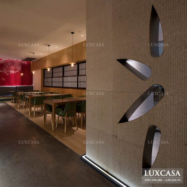 Đặc trưng của phong cách nội thất trong các nhà hàng Nhật Bản hiện nay chính là việc sử dụng chủ yếu các nguyên vật liệu tự nhiên như: Tre, gỗ, sỏi, đá, giấy… Hiểu rõ điều này, các kiến trúc sư của Luxcasa đã áp dụng khá thành công vào các dự án thiết kế nhà hàng Nhật Bản do đơn vị thực hiện thi công.