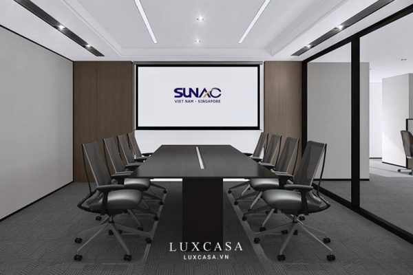 Thiết kế văn phòng trọn gói hiện đại công ty SUNAC với cách bố trí thuận tiện theo diện tích, phù hợp với yêu cầu của các phòng chức năng. Công ty SUNAC có sự kết hợp 2 môi trường là Việt Nam và Singapore nên vừa có nét hiện đại tiên tiến phát triển mà vẫn giữ nét á đông hòa hợp.